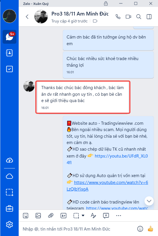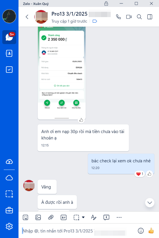 Anh Trung Tín, sau nhiều lần sử dụng và trải nghiệm dịch vụ, đã bày tỏ sự hài lòng và tin tưởng tuyệt đối khi giới thiệu cho người quen. Chân thành cảm ơn anh vì sự ủng hộ! Chúc anh luôn dồi dào sức khỏe và thành công